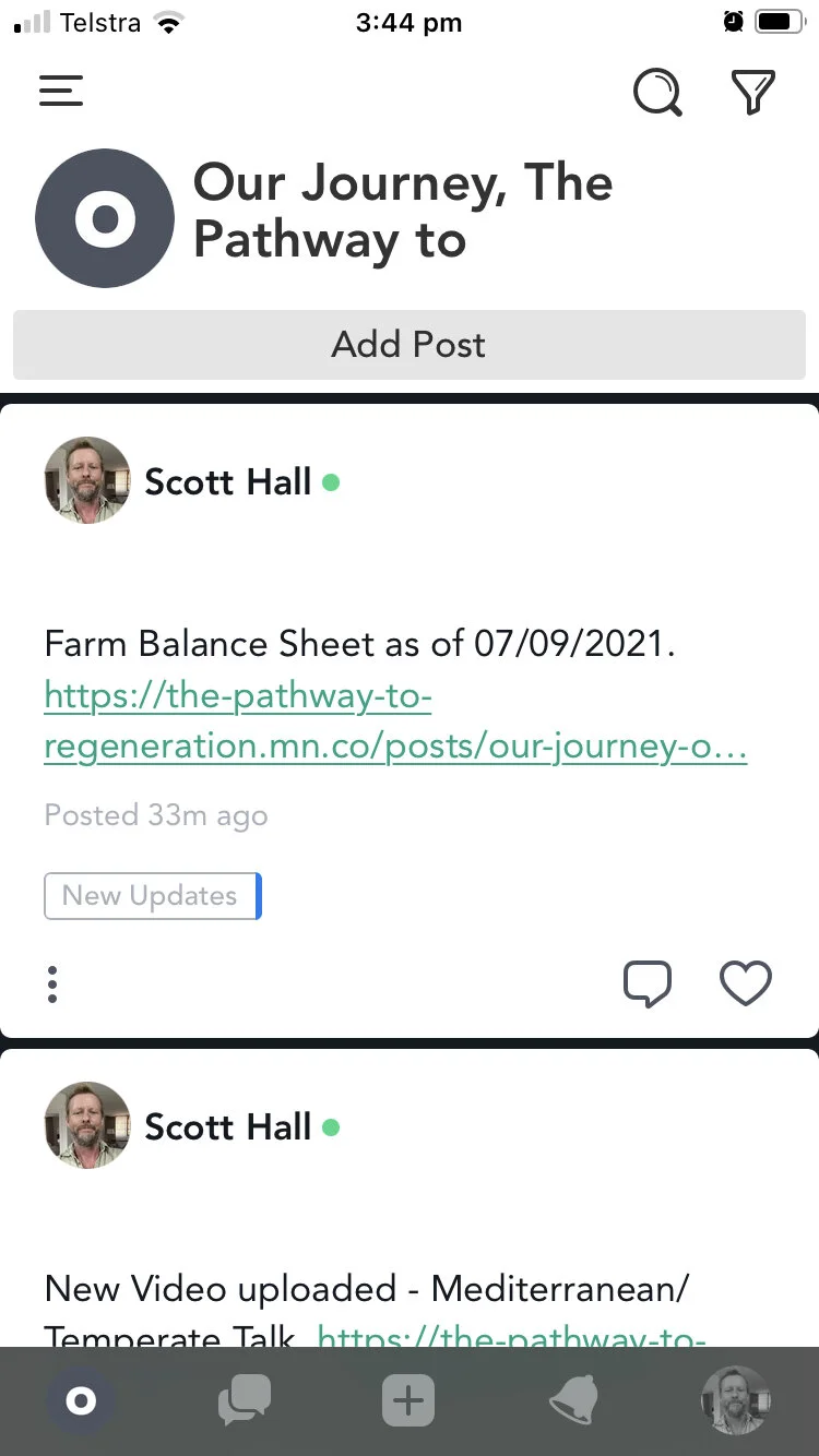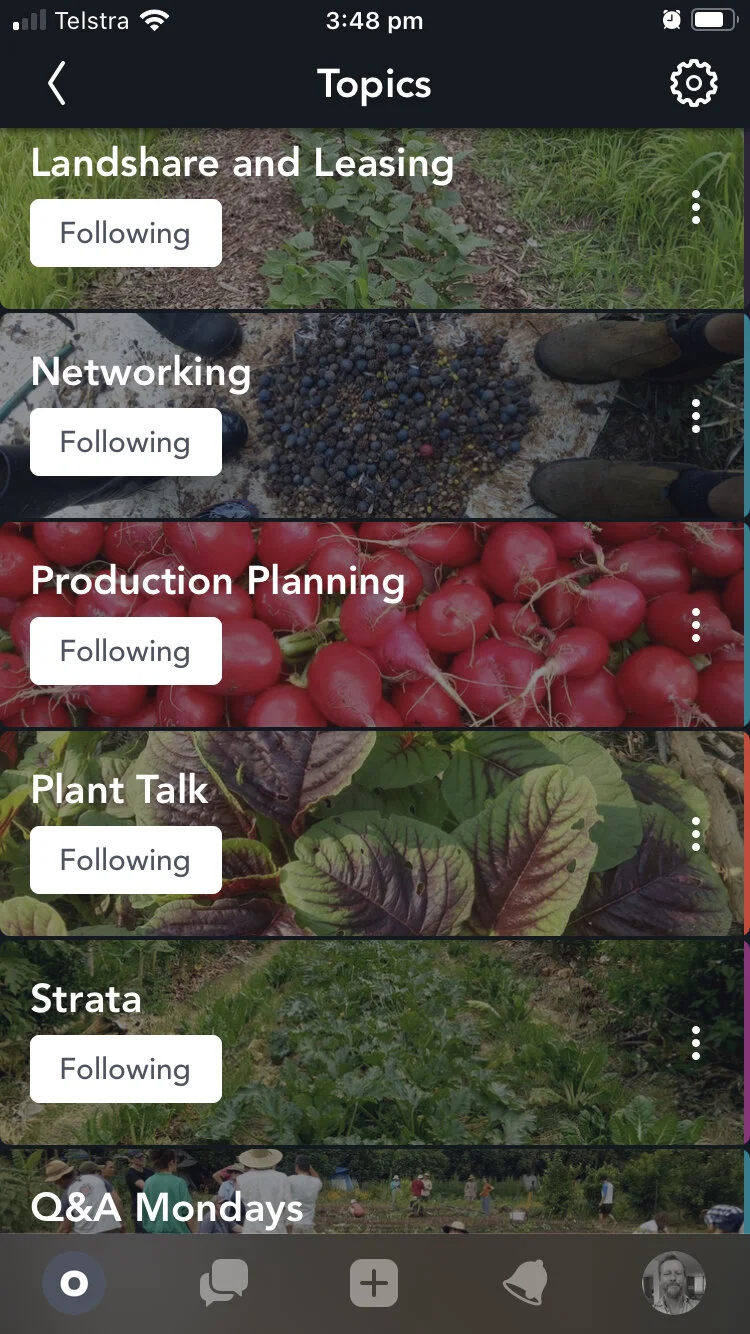 This is a screenshot of the home page on the app, this is where all of the updates from topics and groups are shown.